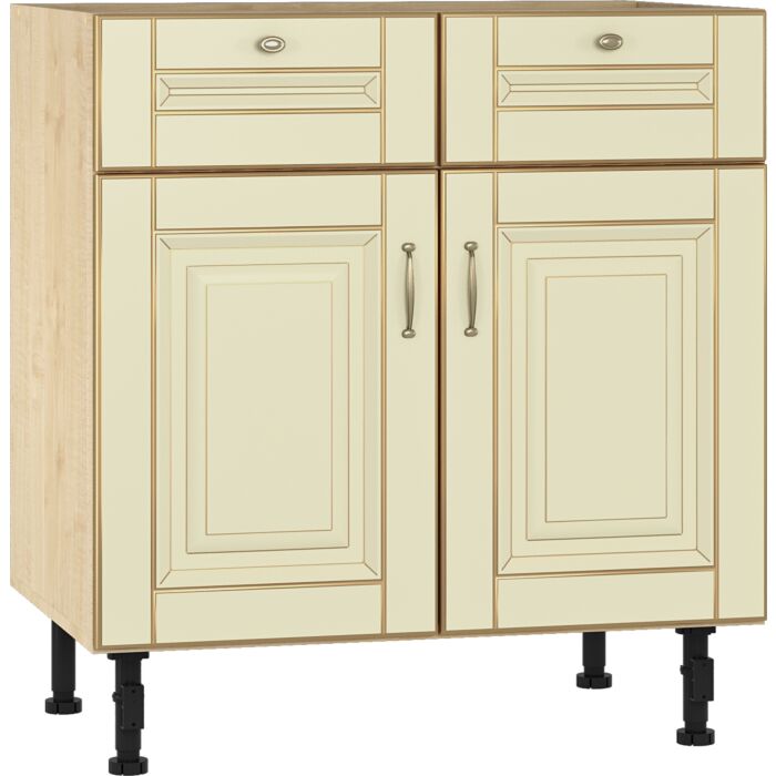 Описание / Кухненски шкаф VANILLA Н-80/87 2 врати+2 чекмеджета, клен/златна патина (004.100.0007)