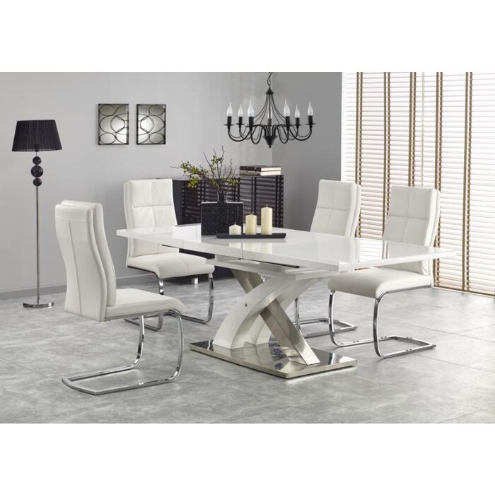 Трапезна маса SANDOR 2 White разтегателна, бяло стъкло/бяло/хром (100.001.0147)