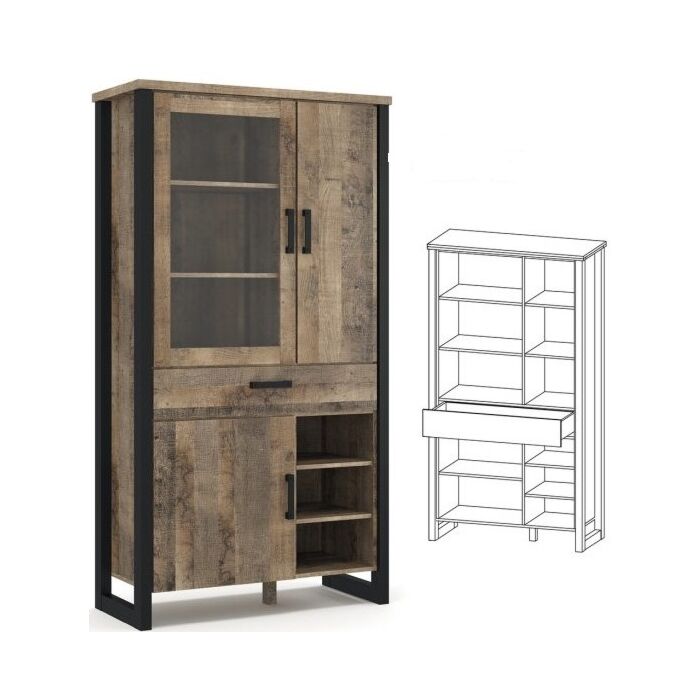 Описание / Витрина EMILI 1В2Д1Ш колониален дъб гранж/черно (089.004.0128)